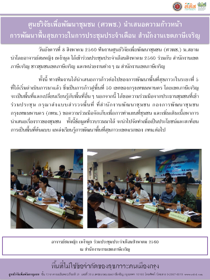‹ Return to ศวพช นำเสนอความก้าวหน้าการพัฒนาพื้นสุขภาวะในการประชุมประจำเดือน สำนักงานเขตภาษีเจริญ