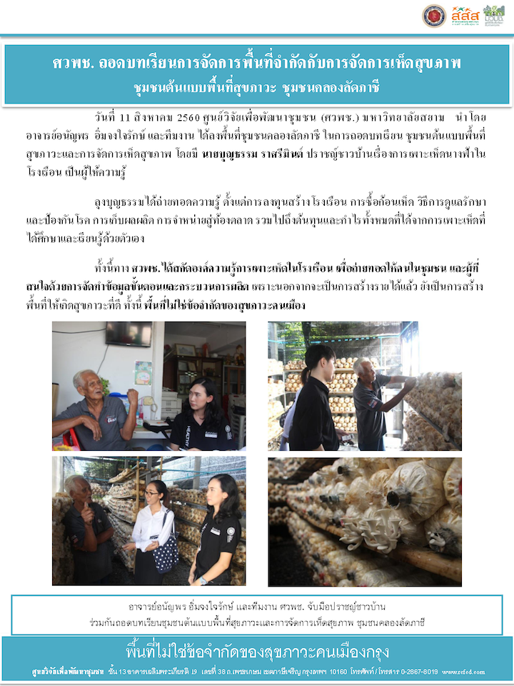 ที่อยู่: ศูนย์วิจัยเพื่อพัฒนาชุมชน มหาวิทยาลัยสยาม