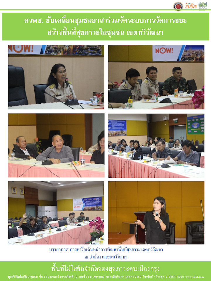 - คณะทำงานชุดที่ 6: ผลักดันให้เขตภาษีเจริญ เป็นพื้นที่สุขภาวะปลอดขยะ