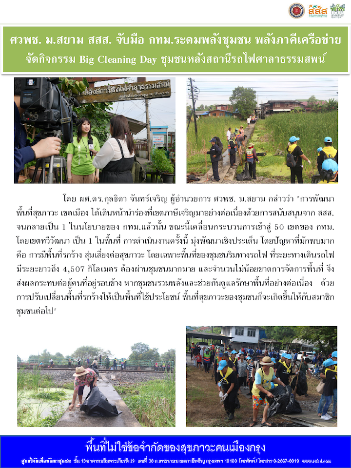 ‹ Return to ศวพช. ม.สยาม สสส. จับมือ กทม.ระดมพลังชุมชน พลังภาคีเครือข่าย จัดกิจกรรม Big Cleaning Day ชุมชนหลังสถานีรถไฟศาลาธรรมสพน์