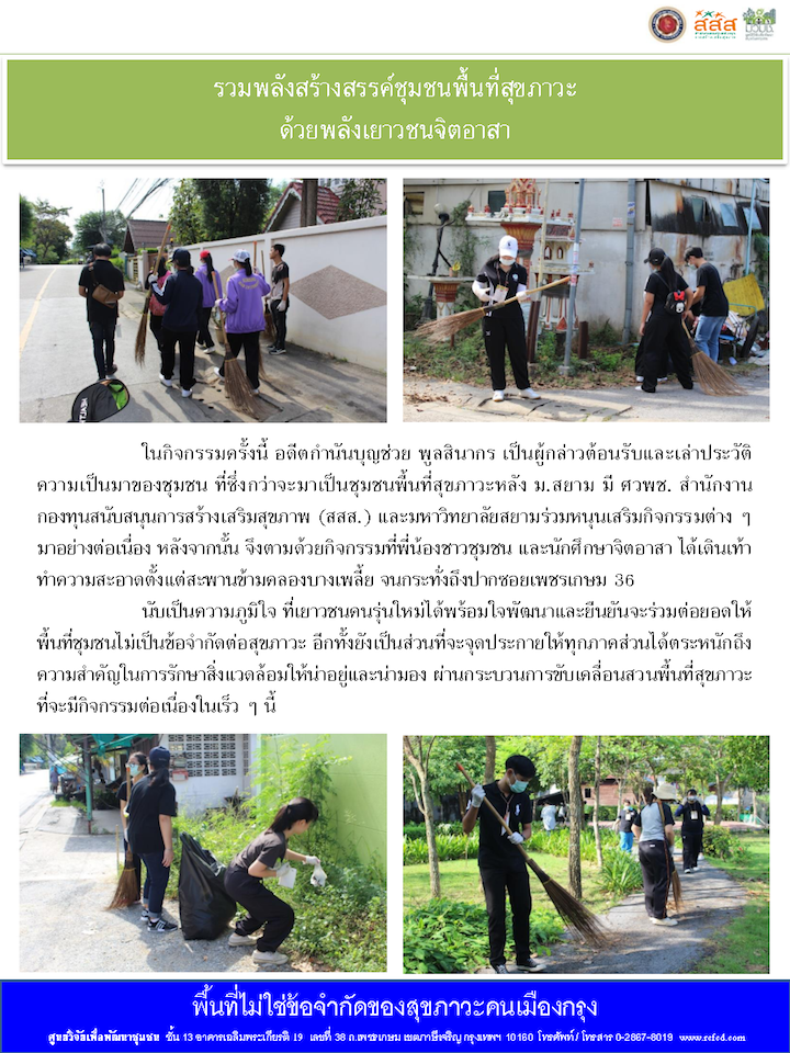 ‹ Return to รวมพลังสร้างสรรค์ชุมชนพื้นที่สุขภาวะ ด้วยพลังเยาวชนจิตอาสา