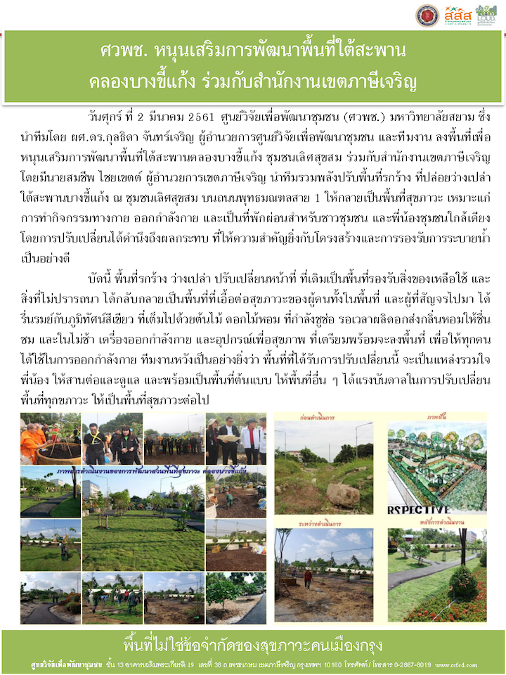 ที่อยู่: ศูนย์วิจัยเพื่อพัฒนาชุมชน มหาวิทยาลัยสยาม
