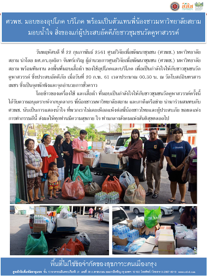 ที่อยู่: ศูนย์วิจัยเพื่อพัฒนาชุมชน มหาวิทยาลัยสยาม