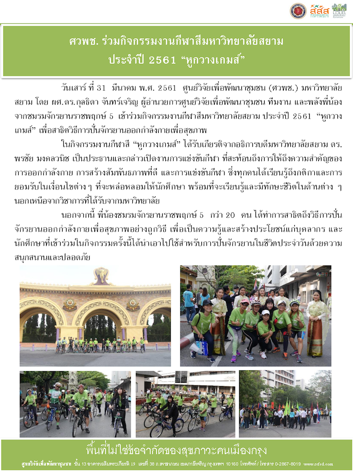 ที่อยู่: ศูนย์วิจัยเพื่อพัฒนาชุมชน มหาวิทยาลัยสยาม