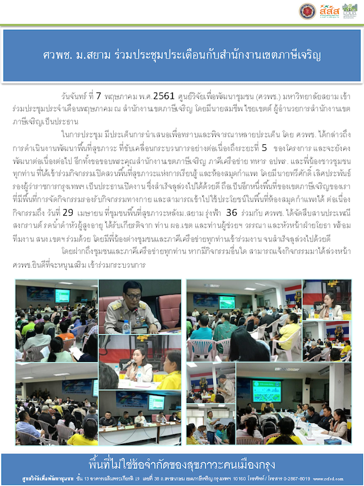 ที่อยู่: ศูนย์วิจัยเพื่อพัฒนาชุมชน มหาวิทยาลัยสยาม