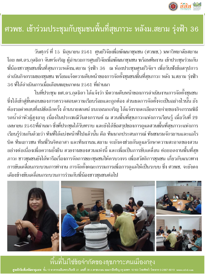 ที่อยู่: ศูนย์วิจัยเพื่อพัฒนาชุมชน มหาวิทยาลัยสยาม