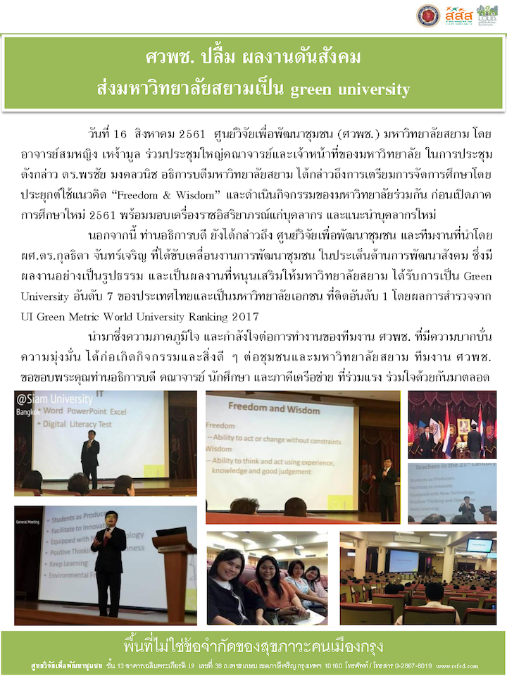 - คณะทำงานชุดที่ 3: เพิ่มพื้นที่สีเขียวในภาษีเจริญ