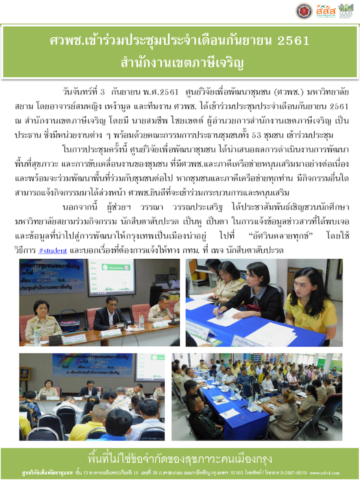 ที่อยู่: ศูนย์วิจัยเพื่อพัฒนาชุมชน มหาวิทยาลัยสยาม