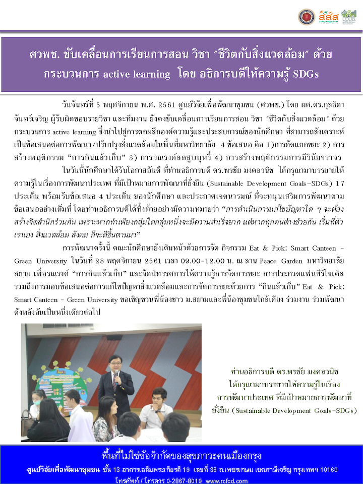 ที่อยู่: ศูนย์วิจัยเพื่อพัฒนาชุมชน มหาวิทยาลัยสยาม