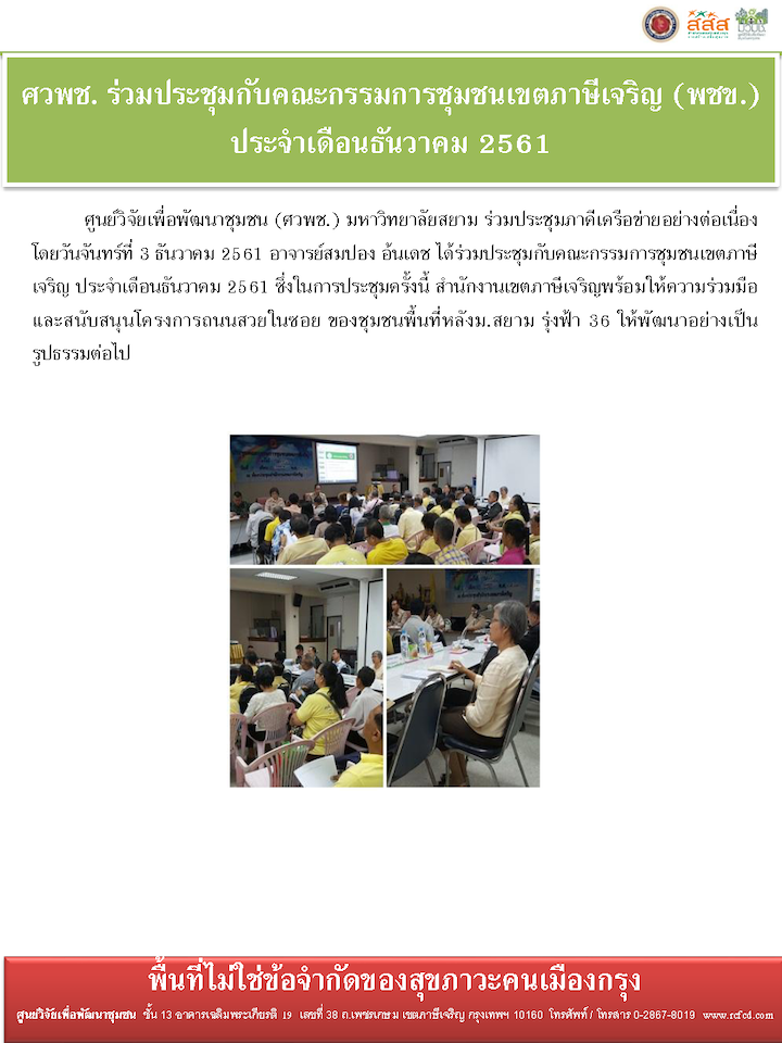 ที่อยู่: ศูนย์วิจัยเพื่อพัฒนาชุมชน มหาวิทยาลัยสยาม