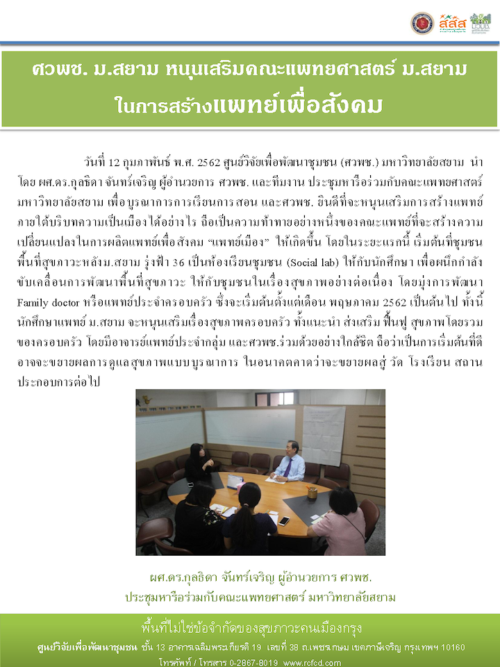 ที่อยู่: ศูนย์วิจัยเพื่อพัฒนาชุมชน มหาวิทยาลัยสยาม
